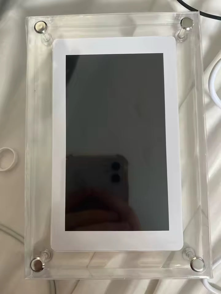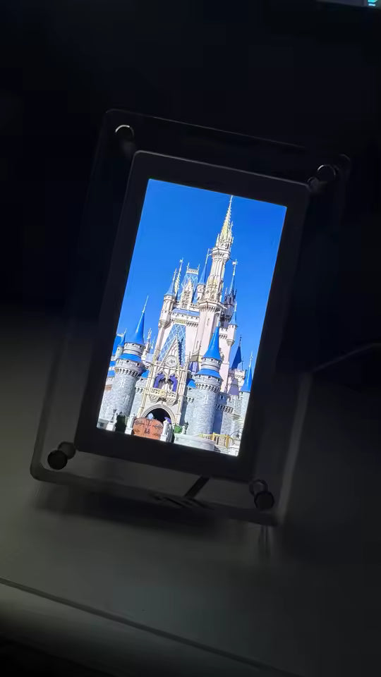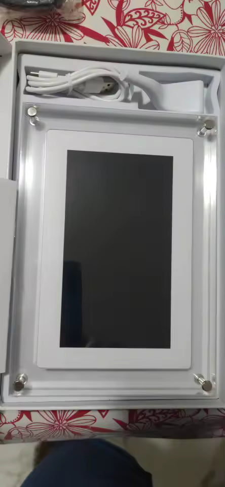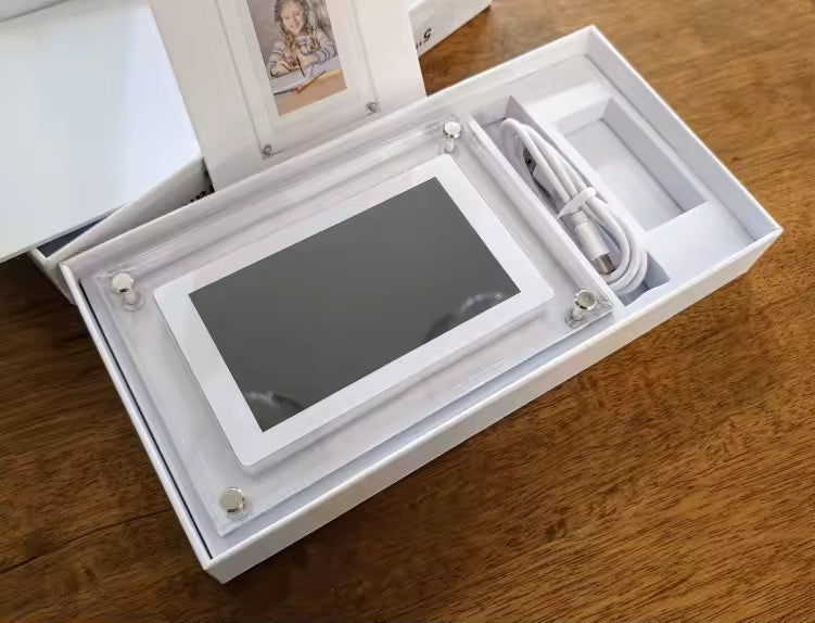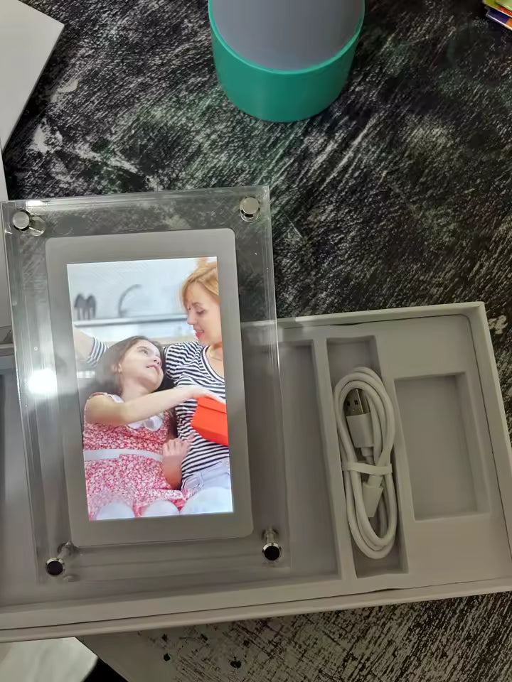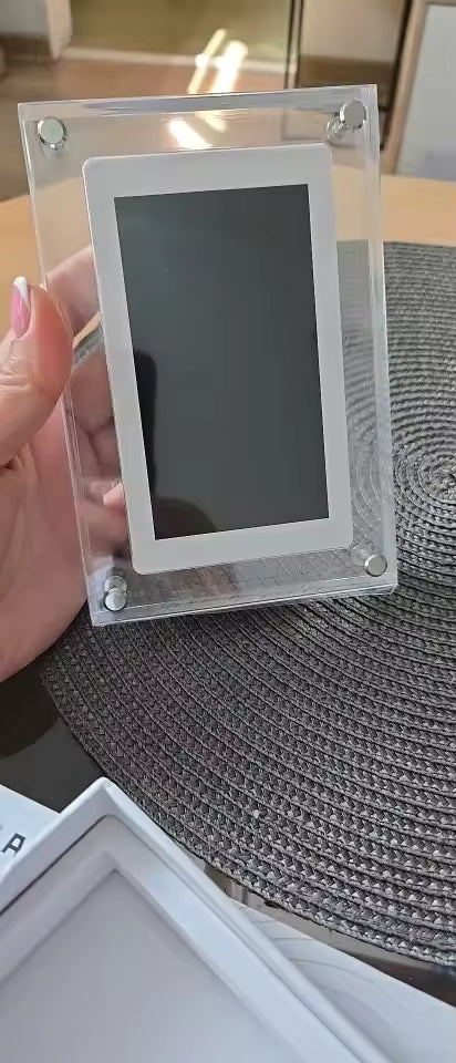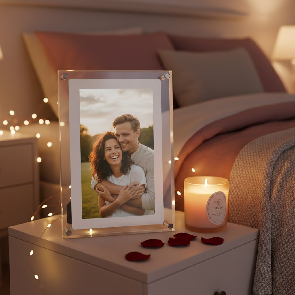 Den här digitala fotoramen låter dig fylla varje ögonblick med era mest älskade minnen och visa dem som ett levande konstverk i hemmet. Med möjligheten att enkelt ladda upp egna bilder blir den en ständig påminnelse om kärlek, närhet och delade stunder.
